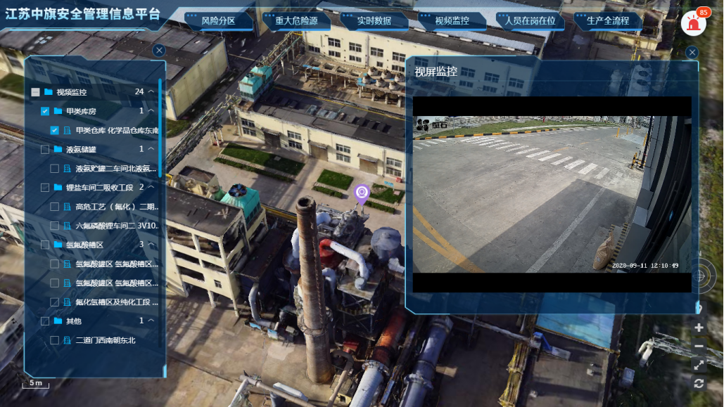 “中旗科技五位一體安全管控平臺(tái)”圍繞風(fēng)險(xiǎn)分級(jí)管控和隱患排查治理體系、化工過(guò)程安全管理、安全生產(chǎn)標(biāo)準(zhǔn)化等內(nèi)容,建設(shè)了重大危險(xiǎn)源監(jiān)控、可燃有毒氣體檢測(cè)報(bào)警、企業(yè)安全風(fēng)險(xiǎn)分區(qū)、生產(chǎn)人員在崗在位信息和企業(yè)生產(chǎn)全流程管理五大模塊。基于5G的網(wǎng)絡(luò)能力和工業(yè)互聯(lián)網(wǎng)平臺(tái)的大數(shù)據(jù)和人工智能的能力,建設(shè)“5G+智能安全生產(chǎn)系列應(yīng)用”,包括5G+高清視頻的違規(guī)作業(yè)識(shí)別、5G+設(shè)備運(yùn)行安全管理、5G+AR智能運(yùn)維、5G+應(yīng)急救援指揮等智慧化應(yīng)用。